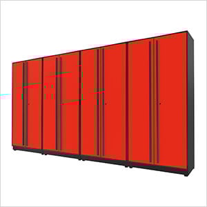 Proslat Garage Cabinets 4-Piece Glossy Red Tall Garage Cabinet Set with Black Handles
