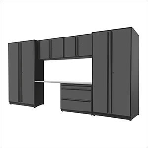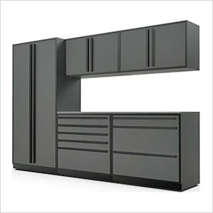 This six (6) piece kit with recessed and channeled worktop provides versatile oversized shelves / drawers, and space saving wall storage to get you clutter-free quickly.