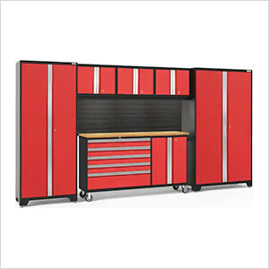 This six (6) piece kit with upgraded Bamboo worktop provides versatile oversized shelves / drawers, and space saving wall storage to get you clutter-free quickly.