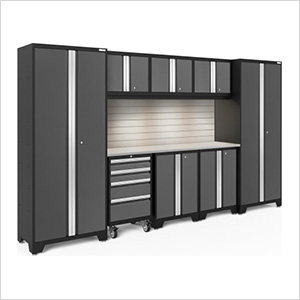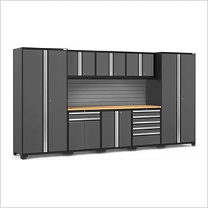 NewAge Garage Cabinets PRO Series Grey 9-Piece Set with Bamboo Top and Slatwall