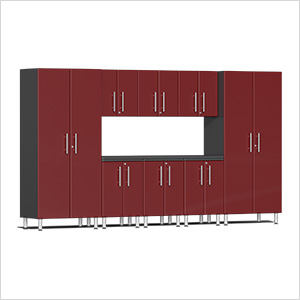 Ulti-MATE Garage Cabinets 9-Piece Garage Cabinet Kit with Channeled Worktop in Ruby Red Metallic