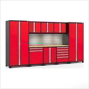 NewAge Garage Cabinets PRO Series Red 9-Piece Set with Bamboo Top, Slatwall and LED Lights