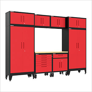 Armadillo Tough Red 9-Piece Garage Cabinet Set with Levelers and Casters