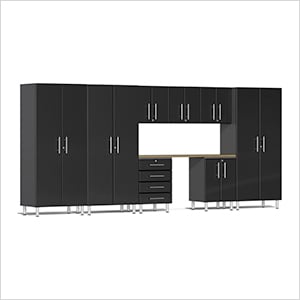 Ulti-MATE Garage Cabinets 9-Piece Garage Cabinet Kit with Bamboo Worktop in Midnight Black Metallic
