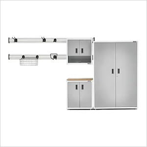 NewAge Garage Cabinets BOLD Series Grey 9-Piece Set with Stainless Top, Backsplash, LED Lights