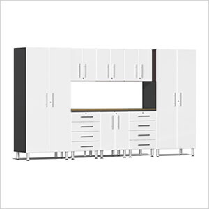 Ulti-MATE Garage Cabinets 9-Piece Garage Cabinet Kit with Bamboo Worktop in Starfire White Metallic