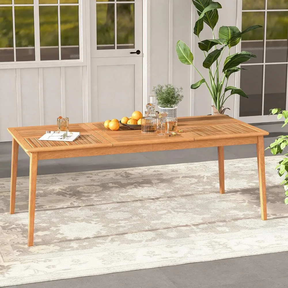 8-Person Outdoor Acacia Wood Dining Table, 79” x 35” Rectangular Bistro Table with 1.96” Umbrella Hole, Outdoor Patio Table for