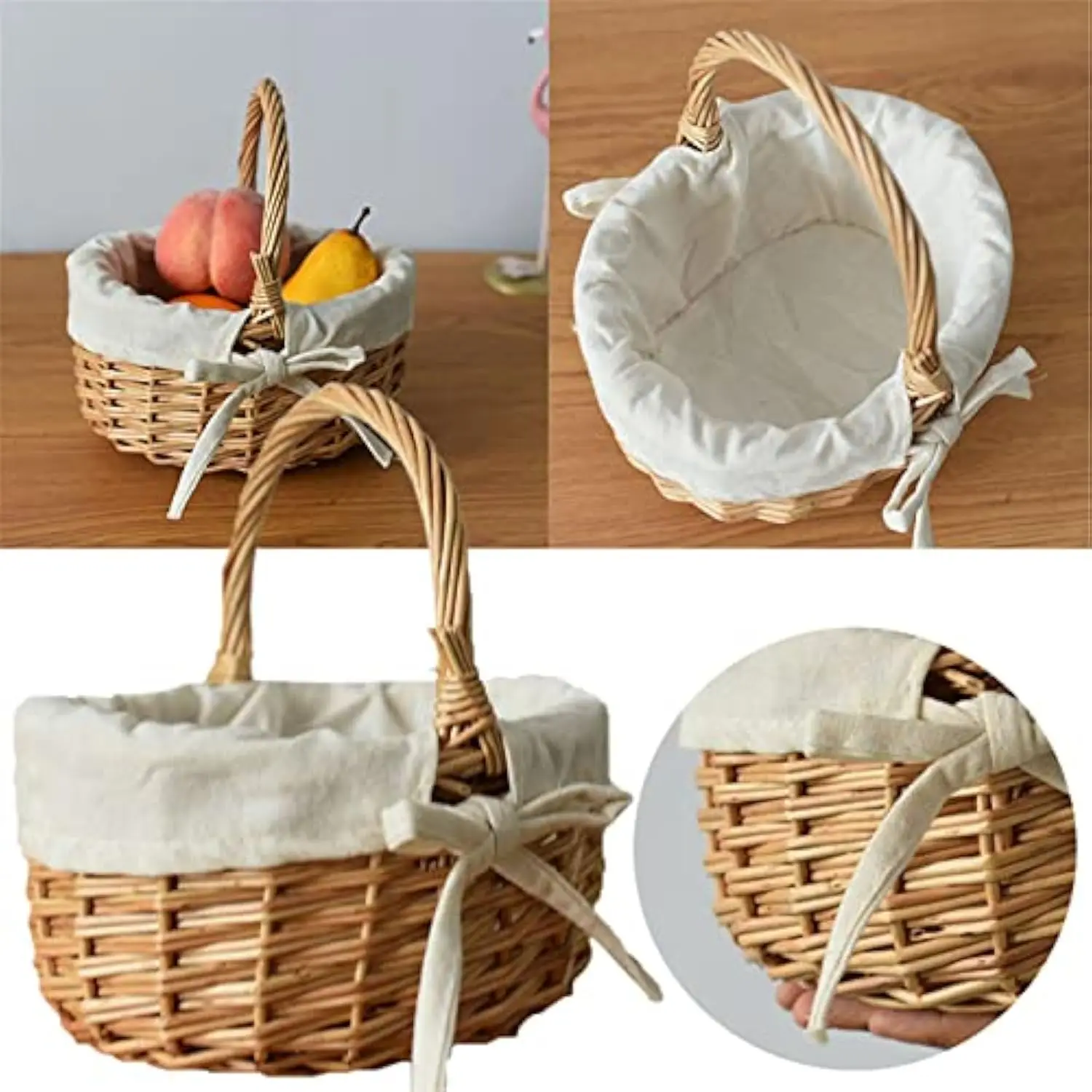 Hand-Woven Wicker Basket Woven Wicker Flower Picnic Gift Flower Girl Basket with Handle Hand Woven Harvest Basket
