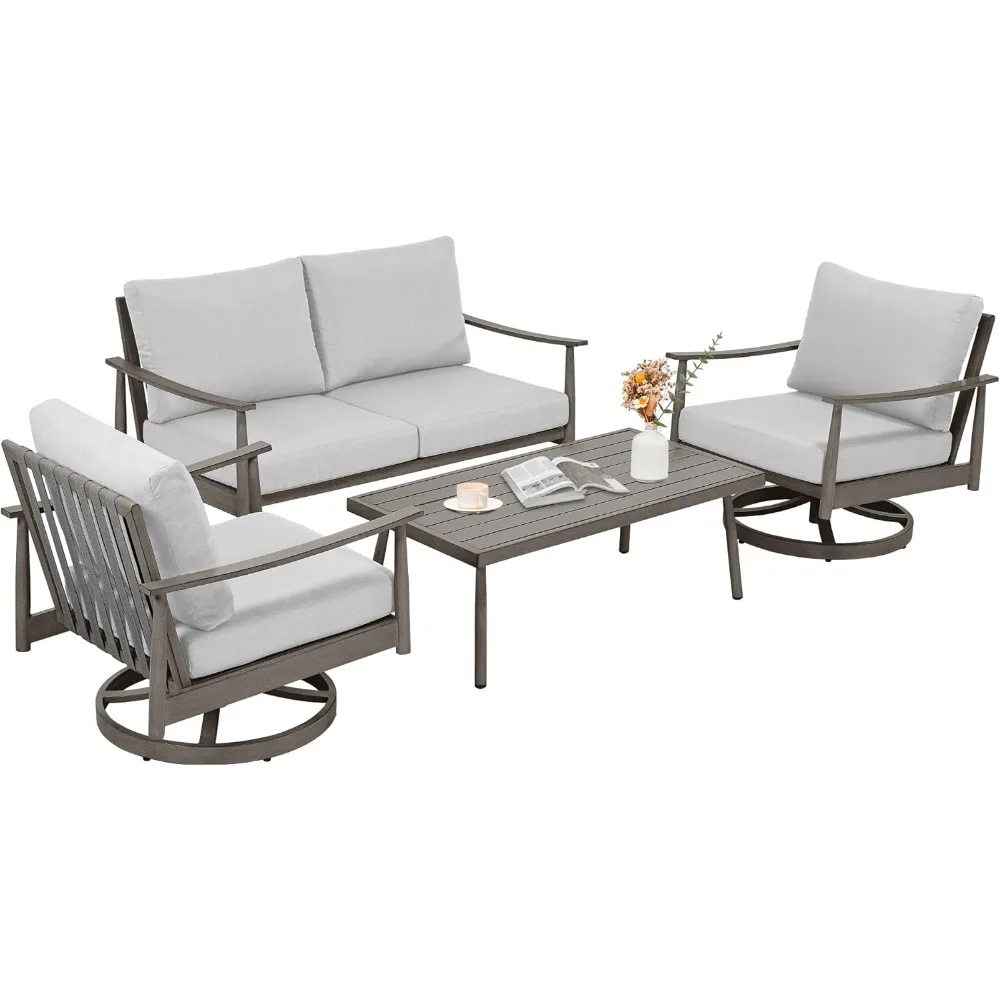 4 Pieces Patio Furniture Set, Aluminum Outdoor Patio Furniture Sets, 2 Swivel Chairs and Loveseat with Thick Cushion, Patio Conv