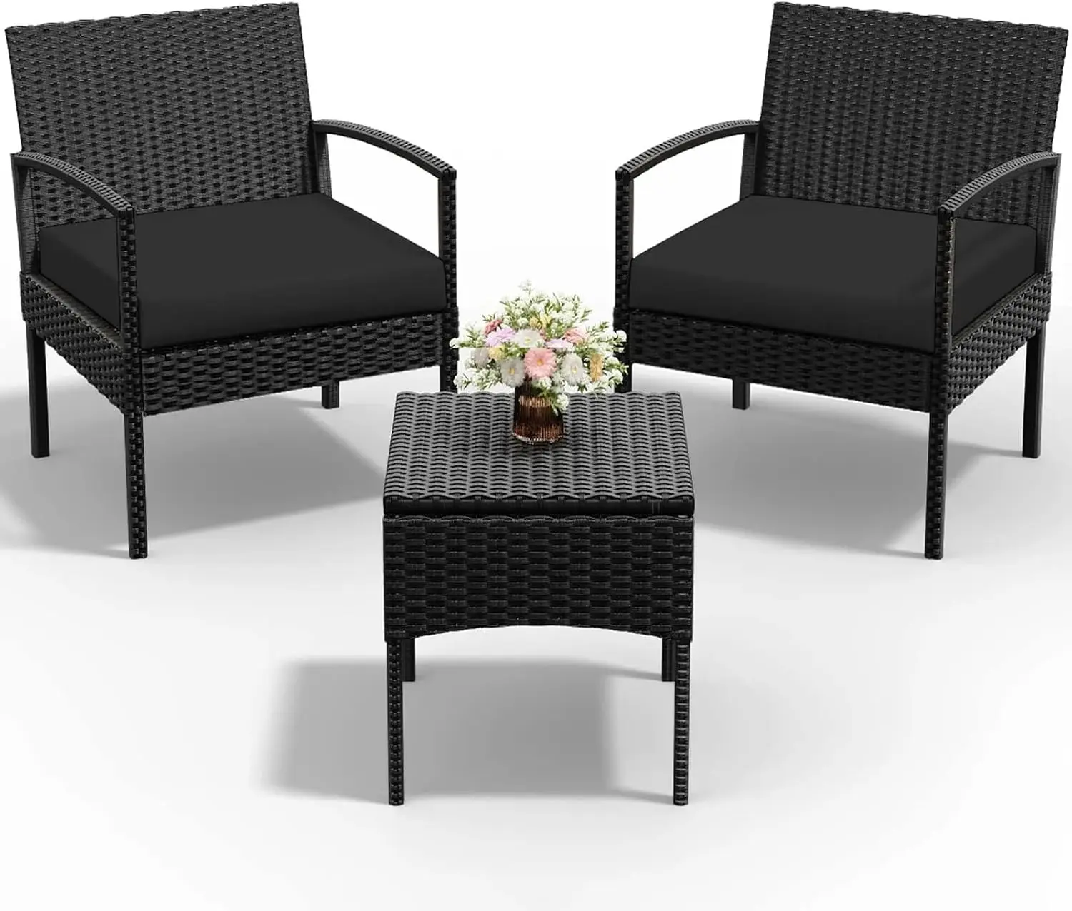 3 PCS Patio Rattan Conversation Chairs Set, Outdoor Patio Furniture Balcony Furniture Set, Wicker Patio Set for Garden Porch-HOT