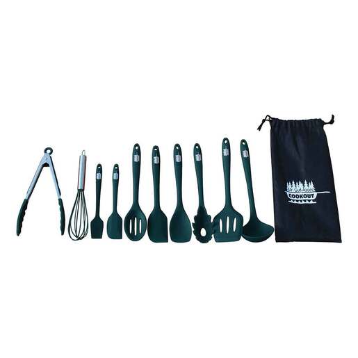 Mr. Outdoors 10 Piece Silicone Coated Utensil Set with Carry Bag - Green