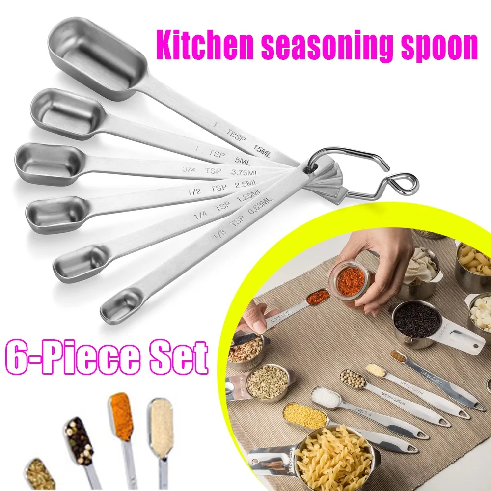 6 Pc Stainless Steel Measuring Spoons Teaspoon Measure Spoon with Scale Handle Seasoning Sugar Scoop Kitchen Gadget Sets  Read more