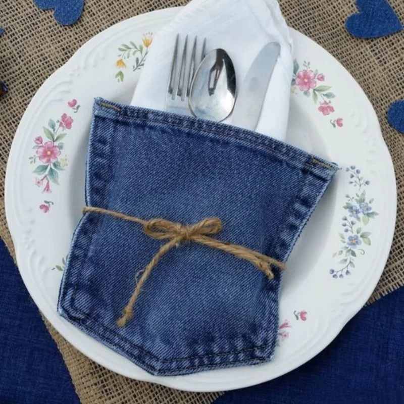 12-48PCS Denim Jean Pocket Silverware Holders Jean Pocket Flatware Holder Wedding Napkin Holder Birthday Western Party Favors