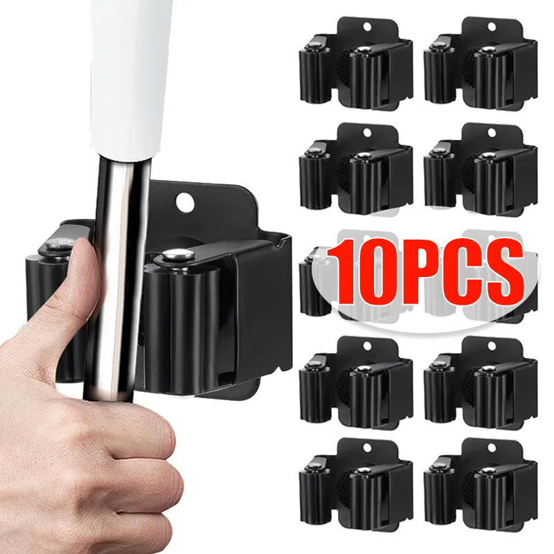 10/1PC Wall Mounted Mop Clips Holder Mop Organizer Rack with Screw Brush Broom Hanger Hooks Waterproof Bathroom Shelf Accessorie