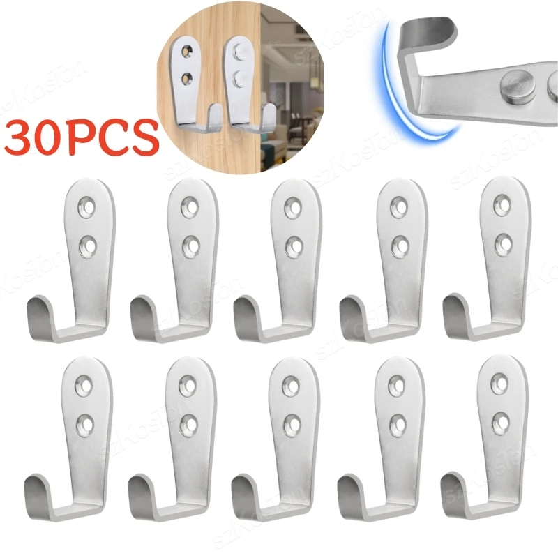 20/10 PCS Double Hole Hook Heavy Duty Stainless Steel Wall Hook Waterproof Hook Bathroom Hanging Towel Key Coat Bag