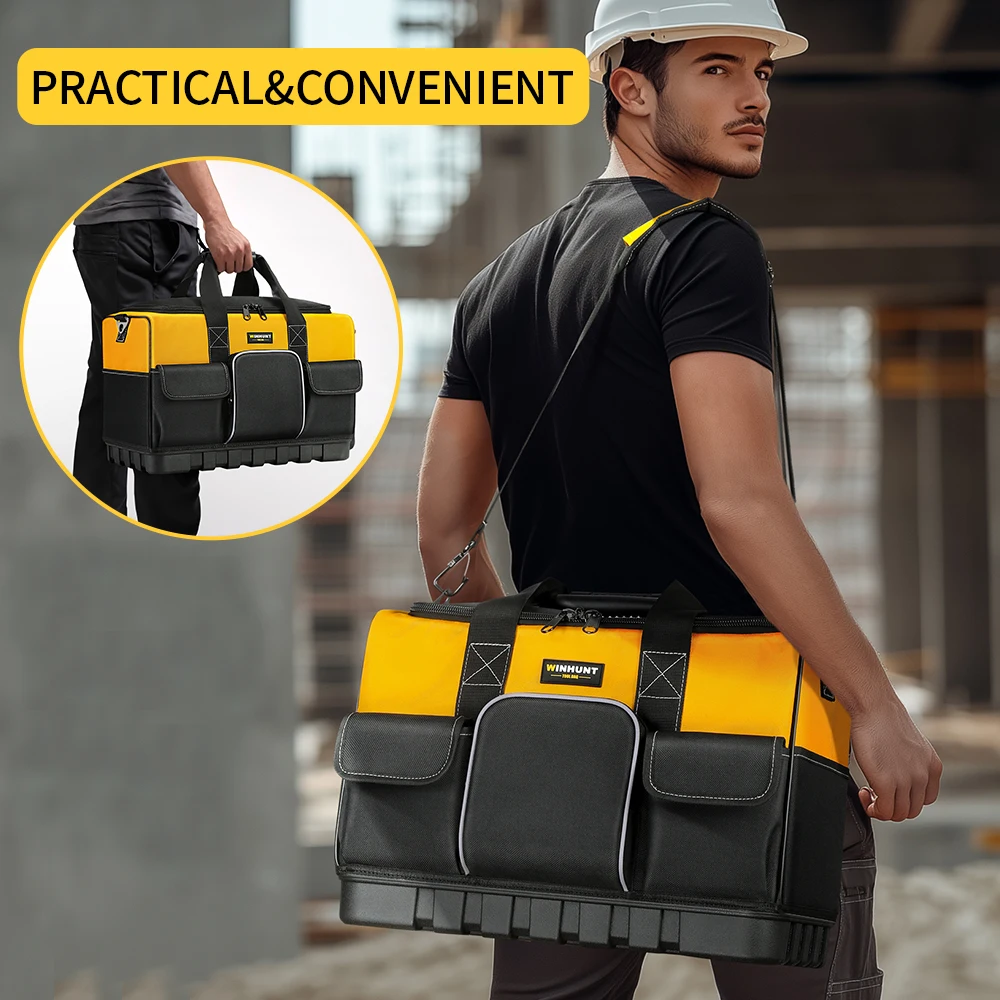 WINHUNT Heavy-Duty Tool Bag with Wide Mouth & Waterproof Base - Adjustable Shoulder Strap, Durable Polyester, Yellow/Black