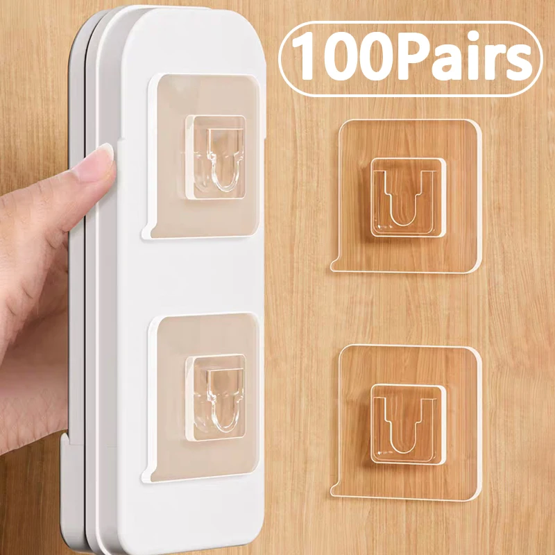 100 Pairs Multi-purpose Transparent Hooks Double-sided Adhesive Wall Hooks Waterproof Clothes Hats Hooks Kitchen Bath Door Hooks