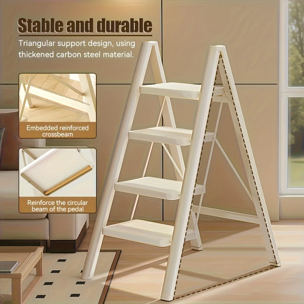 Multifunctional 4 Step Steel Folding Ladder with Tool Shelf Non-Slip Pedals Safety Rail Lightweight Portable for Home Workshop  Read more