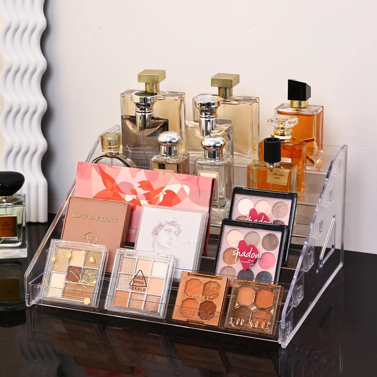 1pc stepped acrylic multi-layer cosmetics display shelf portable desktop organizer shop dresser eye shadow tray storage box