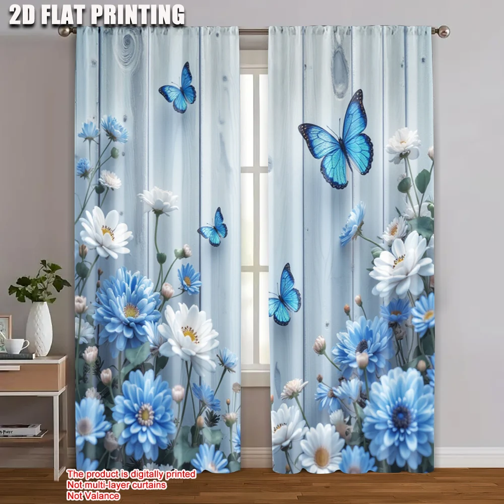 2pcs 2D flat printing Drapes Blue Butterflies Flowers Wooden Versatile Fabric Without Electricity Family Party for gold wall