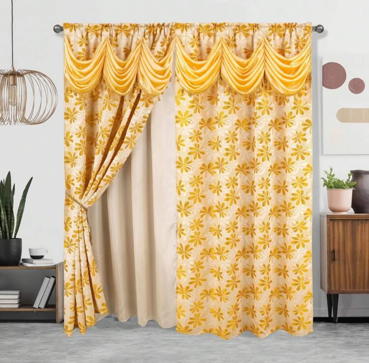 Yellow flower false background pattern printed curtains, bedroom and living room, home decoration, room decoration