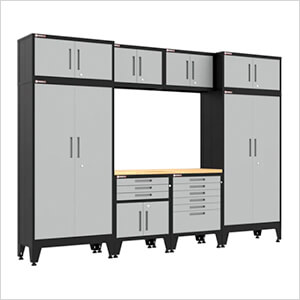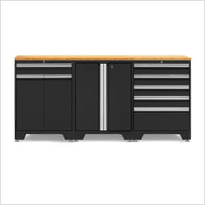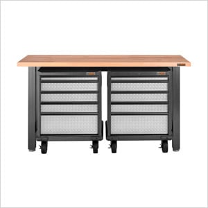 The NewAge Products tool cabinet storage set is constructed with durable 18-gauge steel frames and 19-gauge double-wall drawer fronts, highlighted by a bamboo work surface that combines style and practicality.