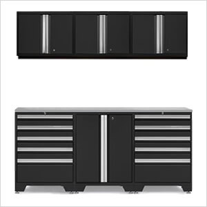 This NewAge Products tool cabinet storage set is constructed with heavy-duty 18-gauge steel frames, robust 19-gauge double-wall drawer fronts, and a stylish stainless steel work surface.
