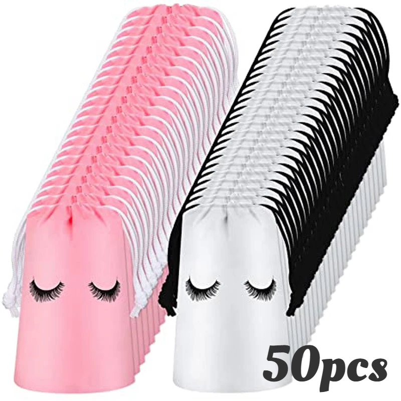 50pcs Storage Bags With Drawstring Eyelash EVA Waterproof Plastic Travel Toilet Packing Bags Portable Cosmetic Makeup Pouch
