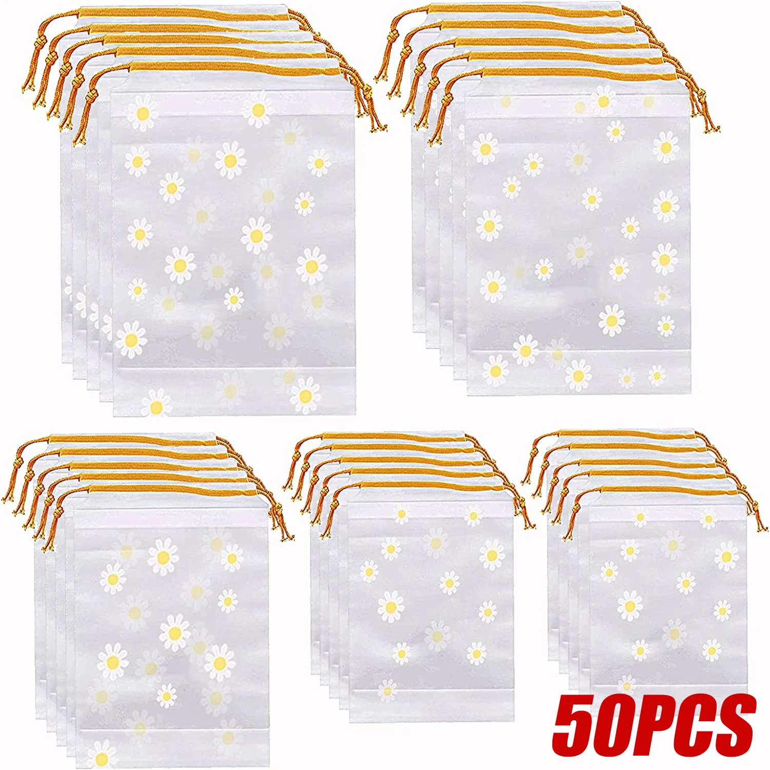 50PCS Drawstring Waterproof Clothes Shoes Storage Bags EVA Daisy Pattern Packaging Organizer Waterproof Makeup Toiletry Bags