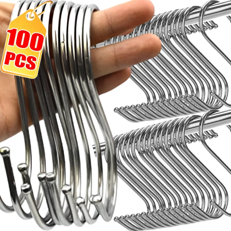 100/10PCS Silver Metal S Hooks Stainless Steel S Shaped Hooks for Kitchen Bathroom Bags Clothes Towels Plants Hanging Holders