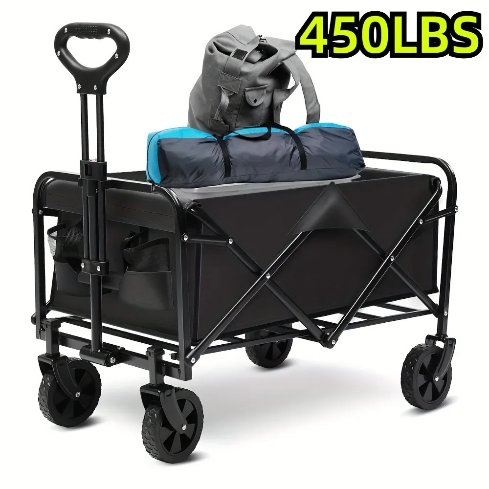 450 lbs Folding Trolley, Heavy Duty Utility Portable Foldable Outdoor Beach Field Trolley with 360° All Terrain Wheels, Side Bag