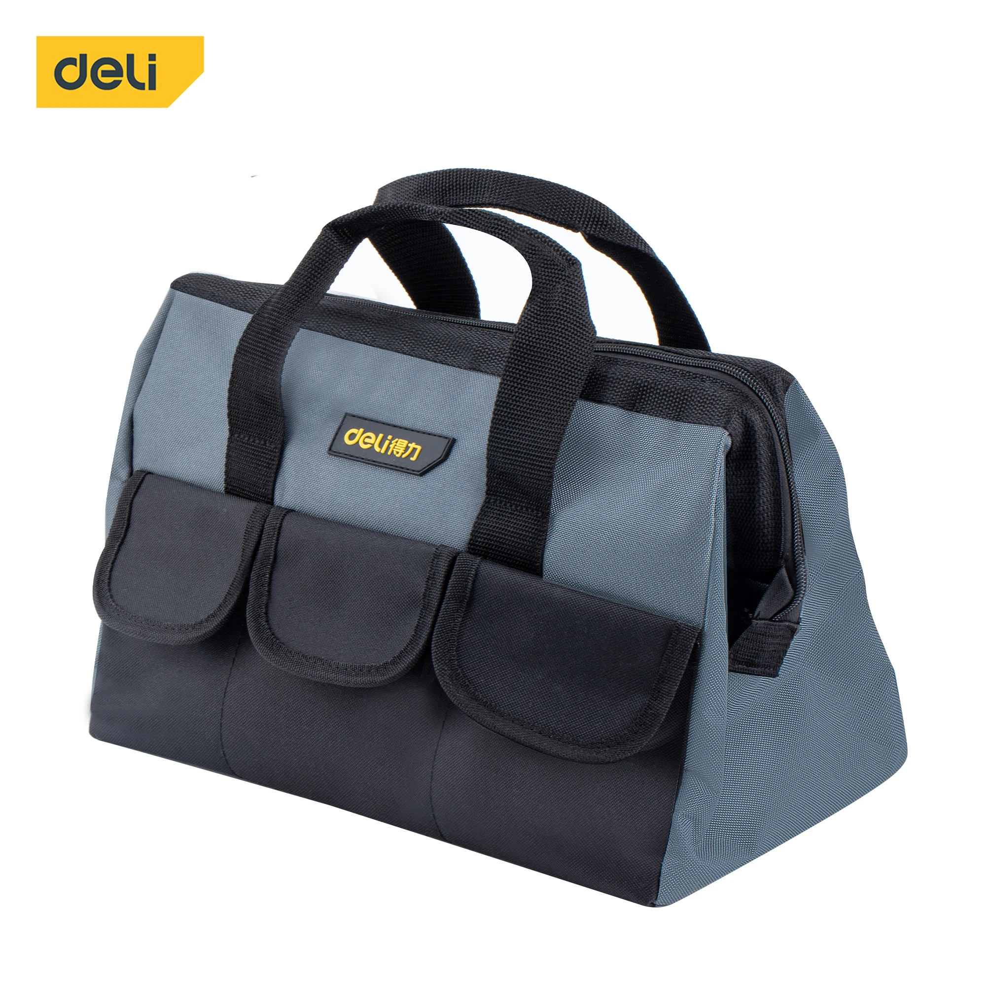 Deli 16in Gray Tool Bag, Multi-Compartment Design with Durable Material, Perfect for Tool Storage and Easy Portability