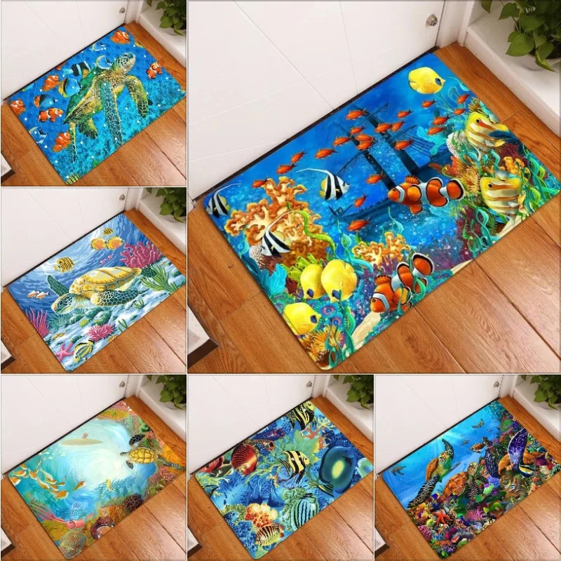 Non-slip Absorbent Colorful Ocean World Tropical Fish Coral Reef Backing Bathroom Kitchen Laundry Room Mat Rug Carpet Home Decor