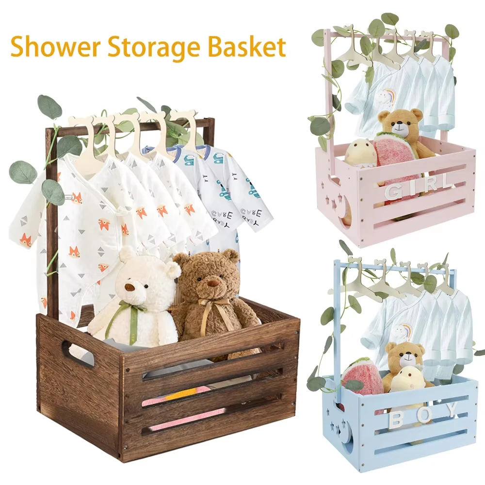 Wood Baby Shower Storage Basket Baby Toys Storage Crate with Handle Decorat Multipurpose Gift Basket for Boys Girls New Parents