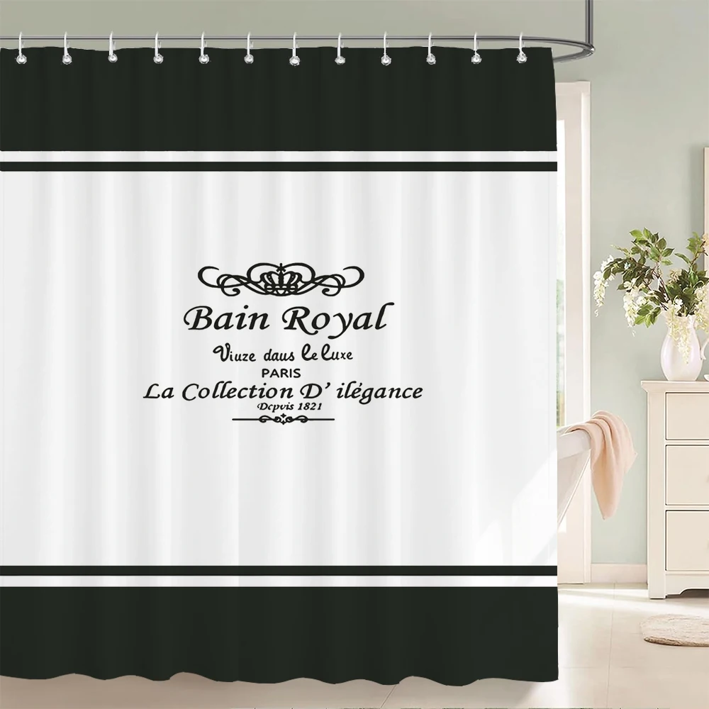 1 pc Black and white Minimalist artistic line pattern polyester shower curtain waterproof fabric, bathroom partition curtain