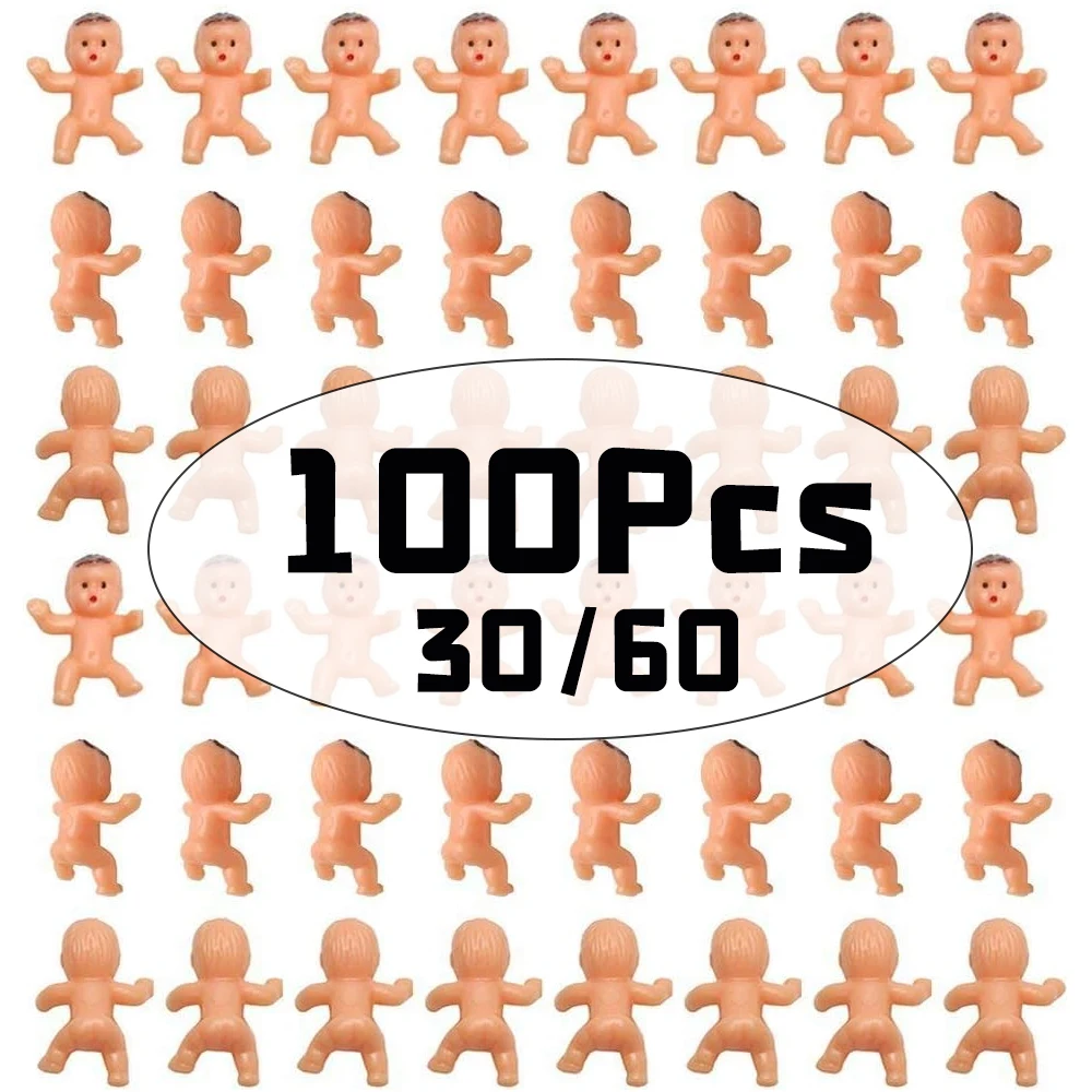 30/60/100Pcs Mini Plastic Babies for Baby Shower Ice Cube Game Tiny Baby for Baby Shower Gender Reveal Birthday Cake Party Favor