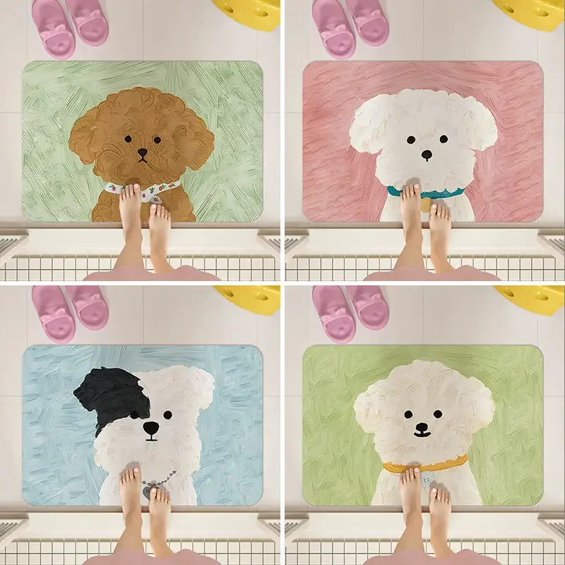 Cartoon Dog Anti Slip Foot Mat Oil Painting Quick Drying Diatom Mud Bathroom Bedroom Water Absorbing Mat Bathroom Mat Set Rug