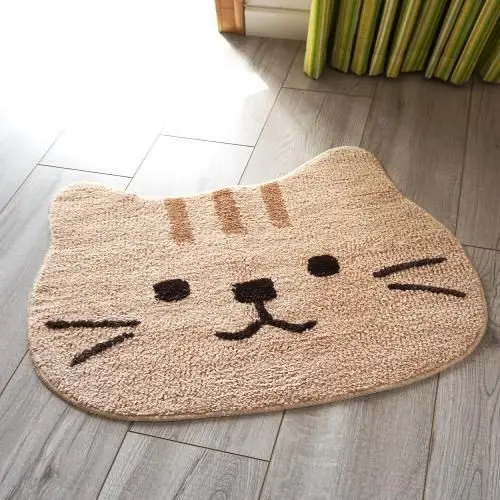 VIKAMA Children's Cute Cartoon Cat Face Modeling Soft Absorbent Foot Cushion Cat Head Machine Washable Mat Bathroom Home Decor