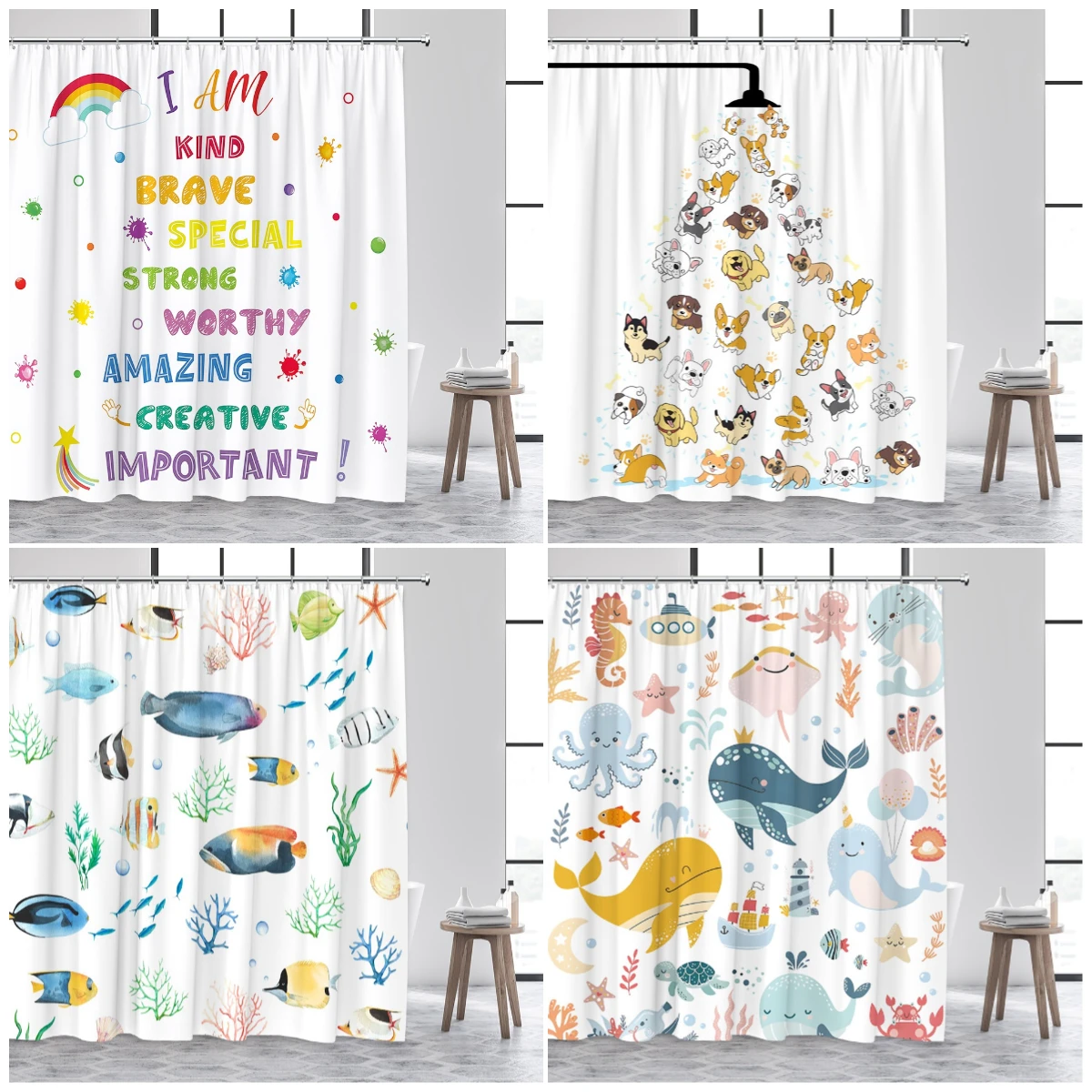 Cartoon Animals Kids Shower Curtains Cute Dogs Pet Ocean Fish Sea Turtle Whale Octopus Child Bathroom Curtain Decor with Hooks