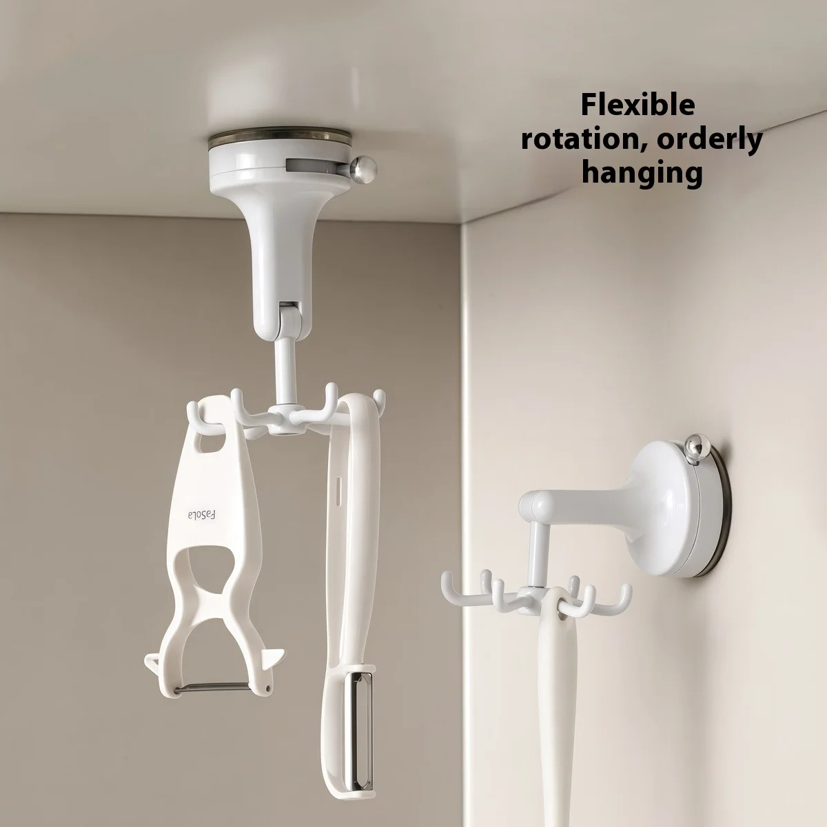 Kitchen Suction Cup Rotating Hook Plastic Rotatable Drill Free Cookware Spatula 6-Claw Suction Cup Wall Mounted Storage Hook