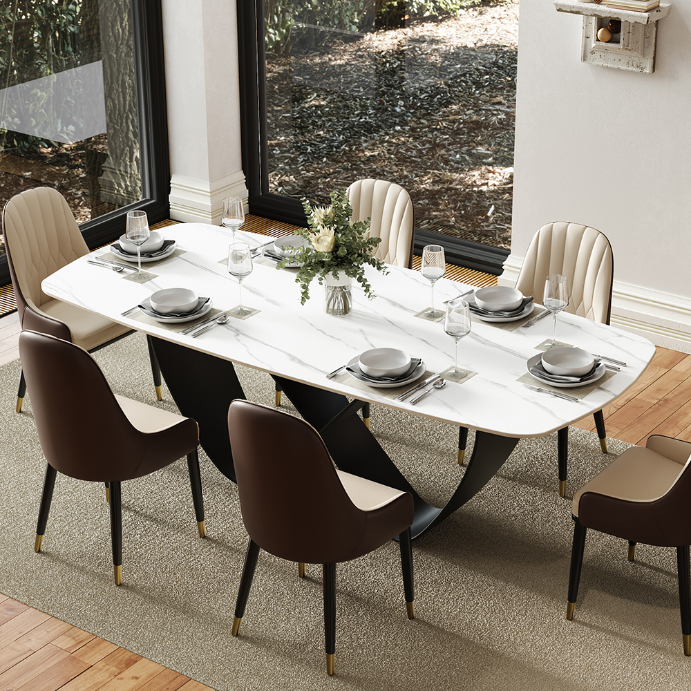 79"Modern White Dining Table for 6-8, Matte Sintered Stone Table, Butterfly Shape Carbon Steel Legs