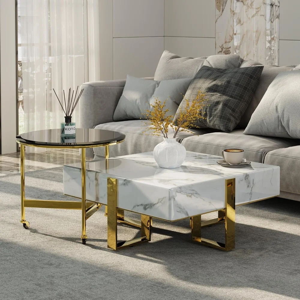 Faux Marble Coffee Table Set with End Table, Luxurious Coffee Tables 2 in 1, Nesting Coffee Table Set for Living Room Apartment