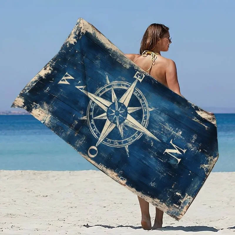 Vintage Compass-Print Beach Towel: Ideal for Sunny Getaways Suitable for towels, bath towels, beach towels
