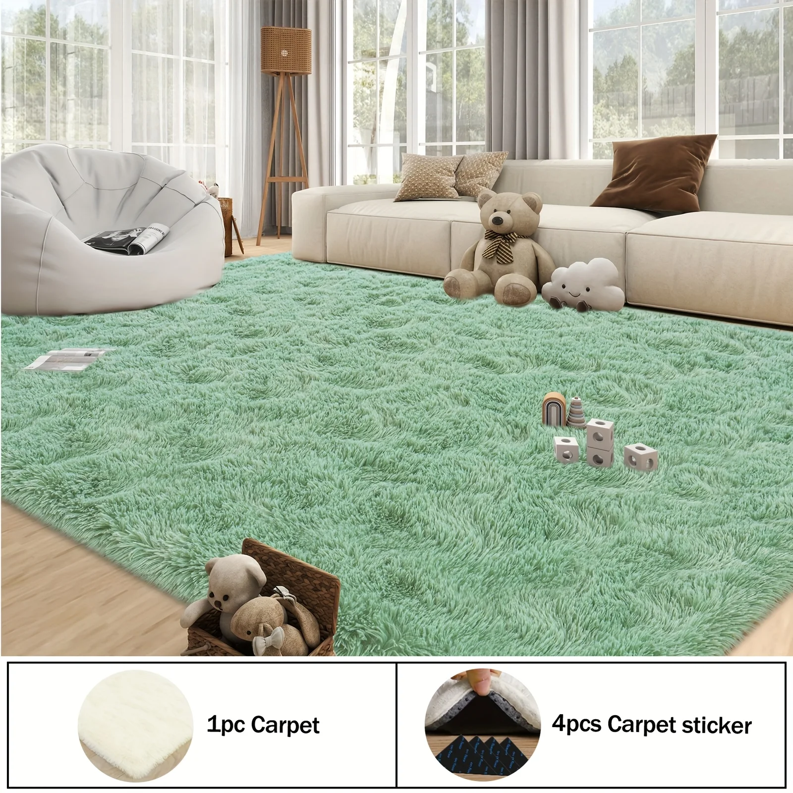 Mint Green Soft Shaggy Non-Slip Rugs For Living Room Bedroom Nursery, Luxury Modern Plush Carpet with 4 Rug Stickers, Room Decor