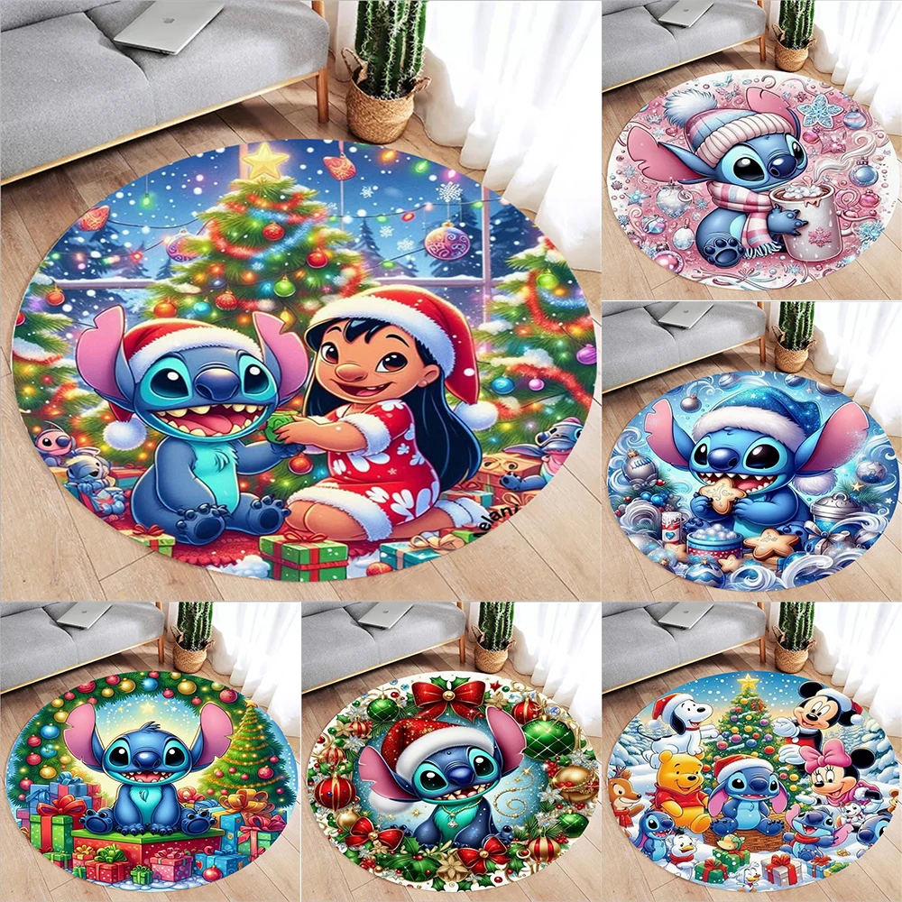 NEW MINISO Winter Christmas Stitch Print Round Rugs Room Floor Mats Non-Slip Living Room Rugs Washable Carpet for Home Decor Mat