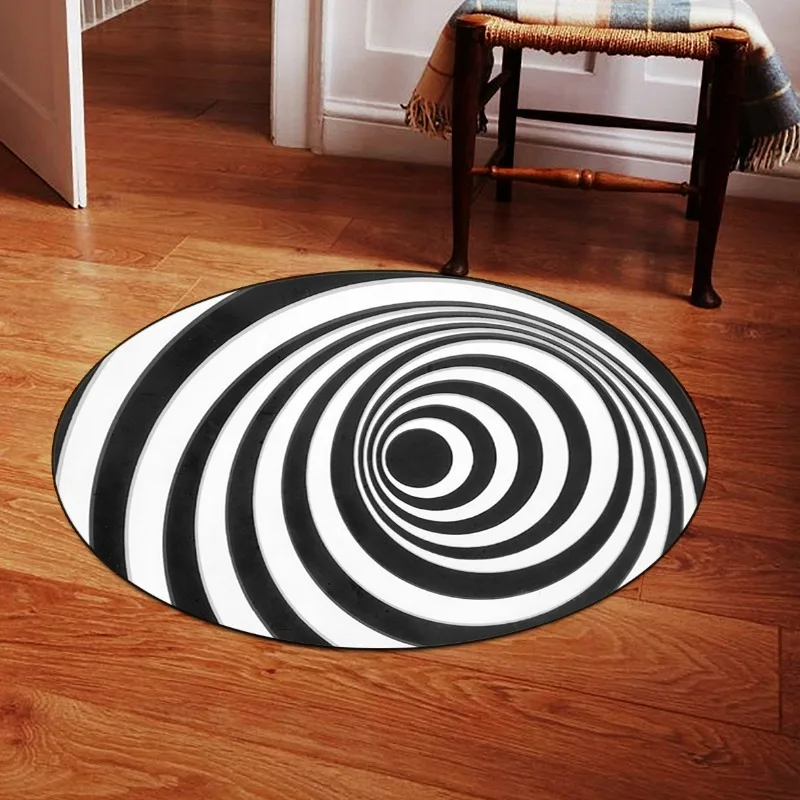 Black White Geometric Stripes Circular Carpet Abstract Texture Printed Rug Living Room Cloakroom Anti Slip Mat Home Decoration