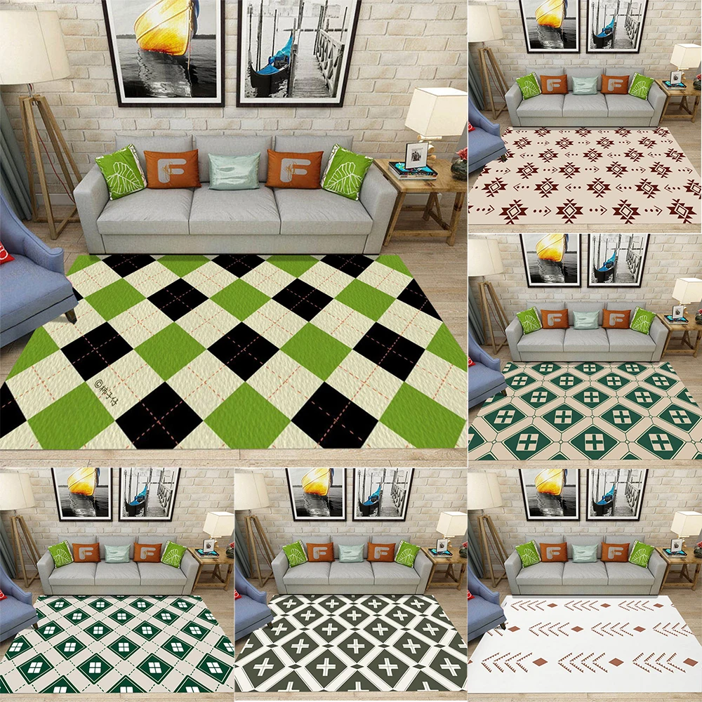 Geometric Ethnic Style Carpet With Retro Diamond Checkerboard Patterns NonSlip Rug For Living Room Bedroom Sofa Area