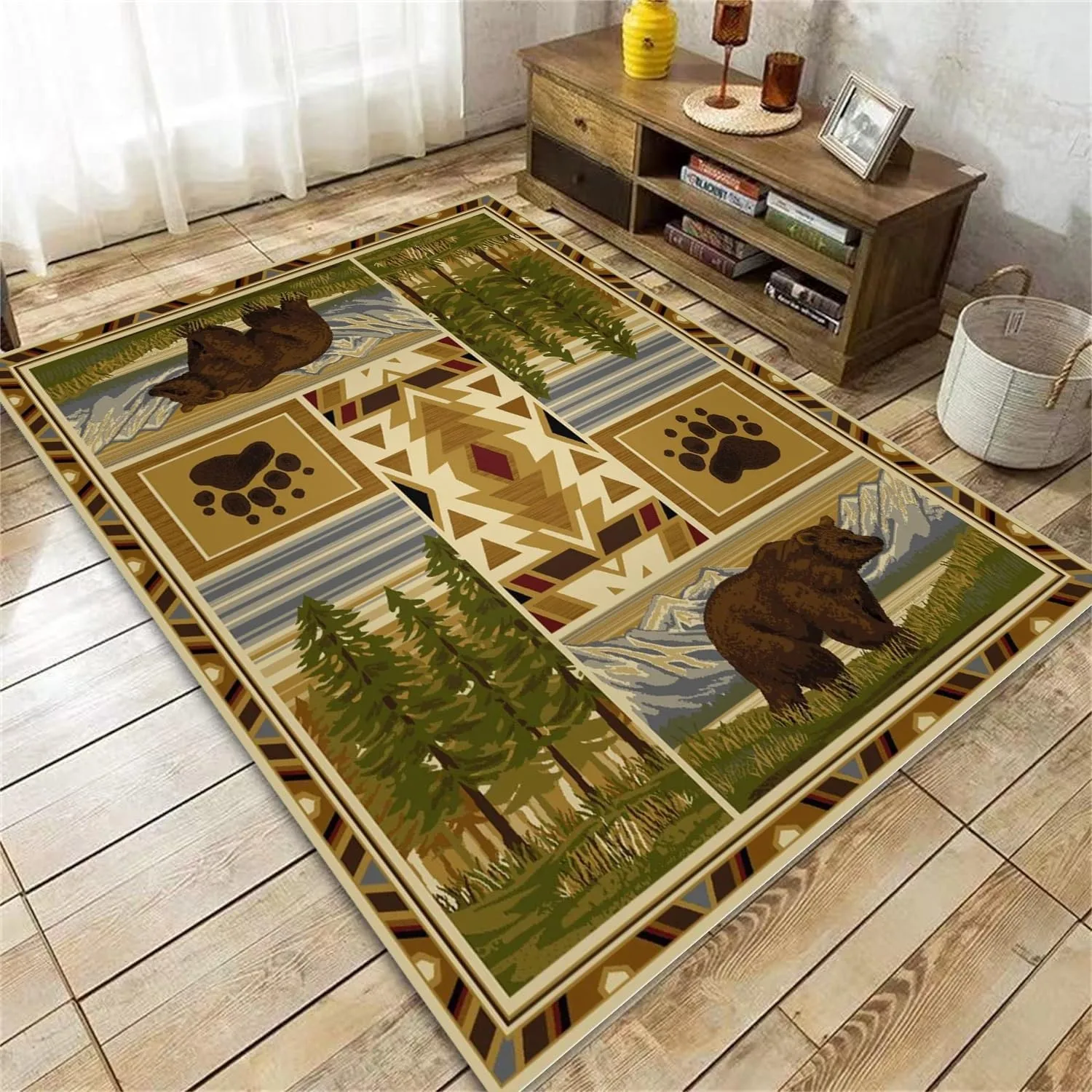 Brown Bear Area Rug Southwestern Rustic Rug, Farmhouse Wild Animal Living Room Rugs Machine Washable Maple Bear Claw Carpet  Read more