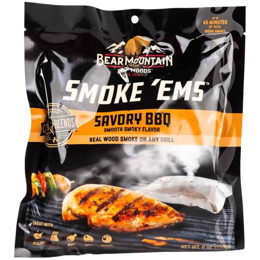Bear Mountain BBQ Smoke 'Ems Grill Packets - Savory BBQ Ready to add delicious smoke flavor to your gas grilling game? This Savory BBQ Blend brings out the rich, natural flavor of food. Crafted from natural hardwoods, this blend adds a smooth smoke...