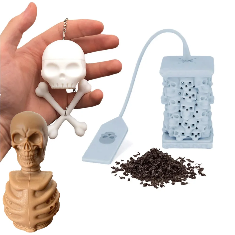 Silicone Skull Tea Infusers Hallowmas Bones Skull Tea Filter Diffuser Strainer for Loose Leaf Leaves, Mugs and Teapots